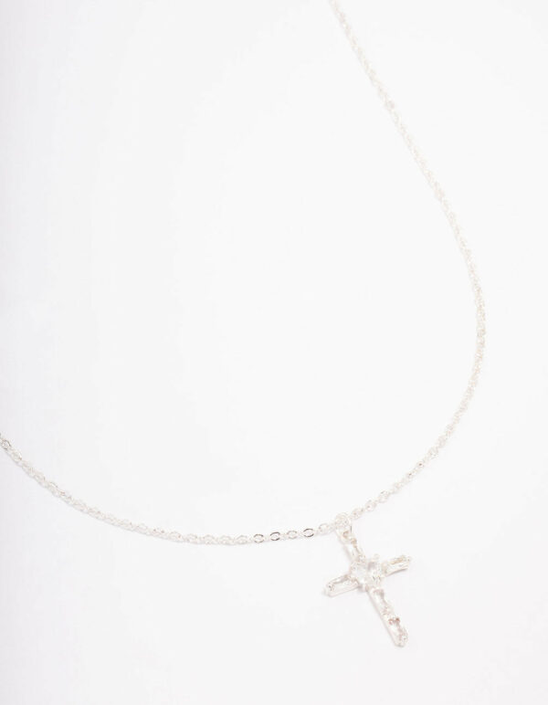 Cubic Zirconia Baguette Cross Pendant Necklace