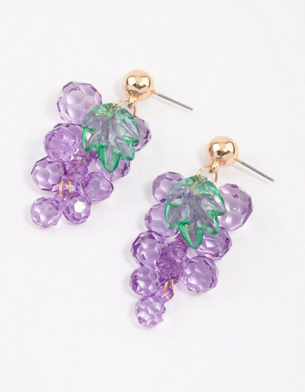 Purple Beaded Grape Drop Earrings