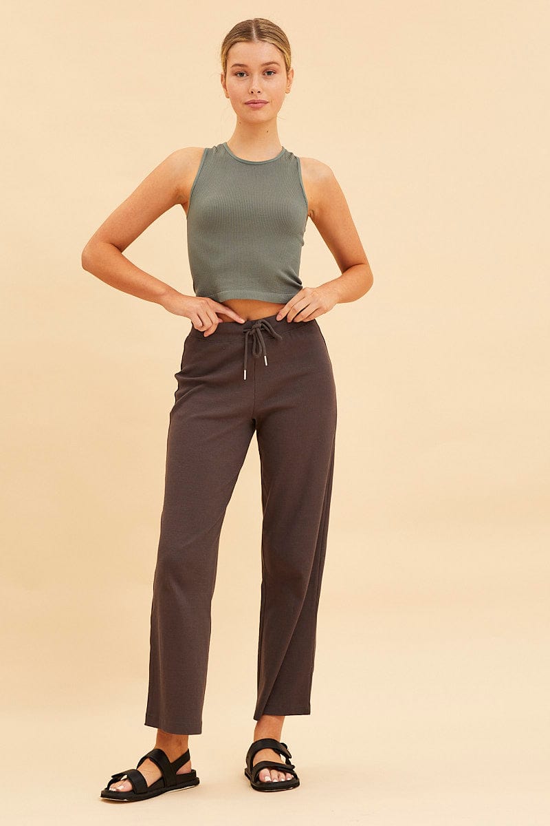Beige Bone Seamless Tank Crop Racer Back Sleeveless